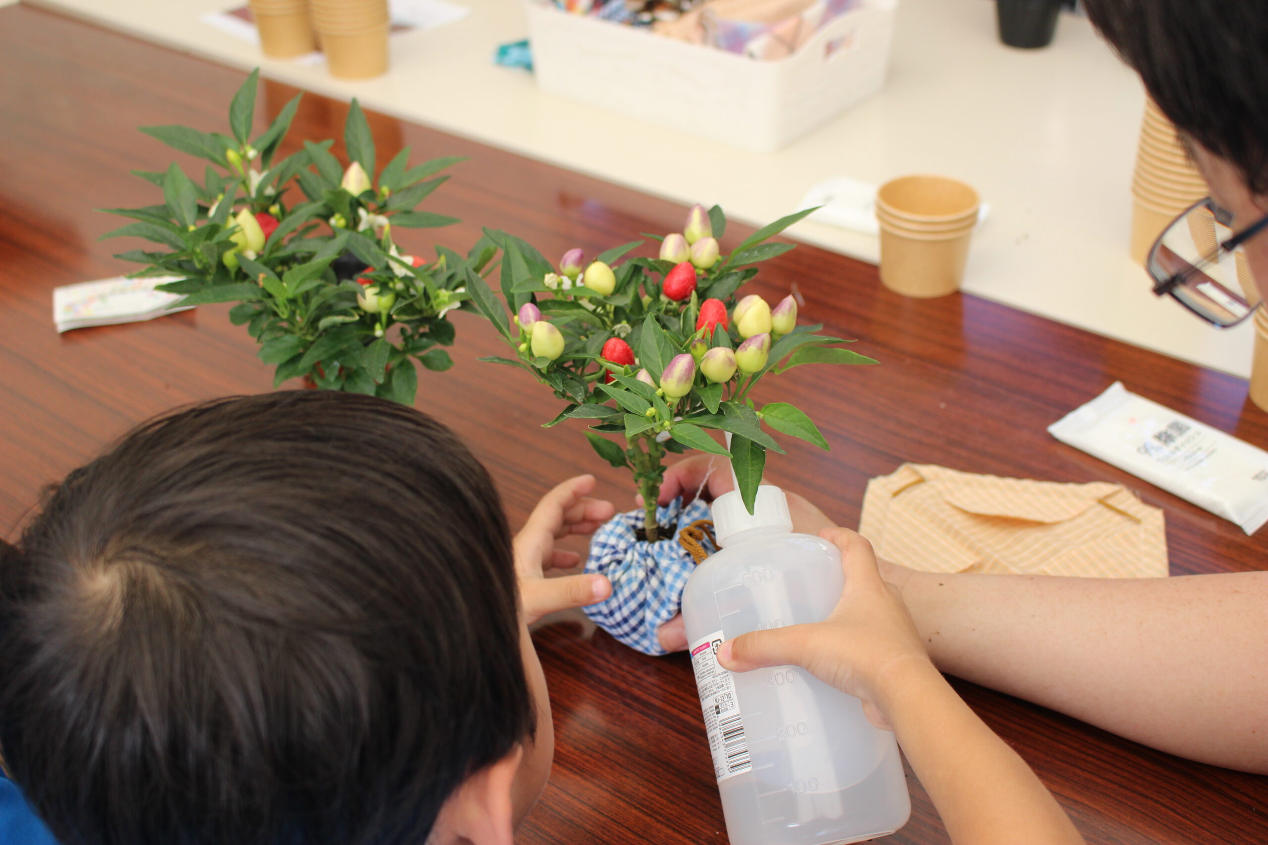 当社はアグリ事業の「花活布」を作る体験を実施し、たくさんの子供たちに挑戦してもらいました。